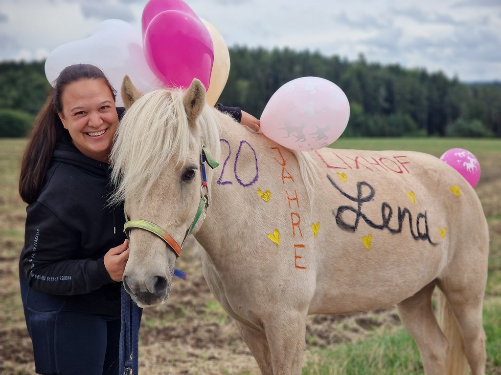 | 20 Jahre Lena | 26.09.2025 | Diesen September ist Lena ganze 20 Jahre bei uns auf dem Lixhof - ein Wahnsinn! Das war natürlich Anlass zum Feiern und so gab es bei Musik und Diashow in der Halle super leckere Pizza aus dem Pizzaofen - auf die nächsten 20 Jahre! Wir freuen uns! |